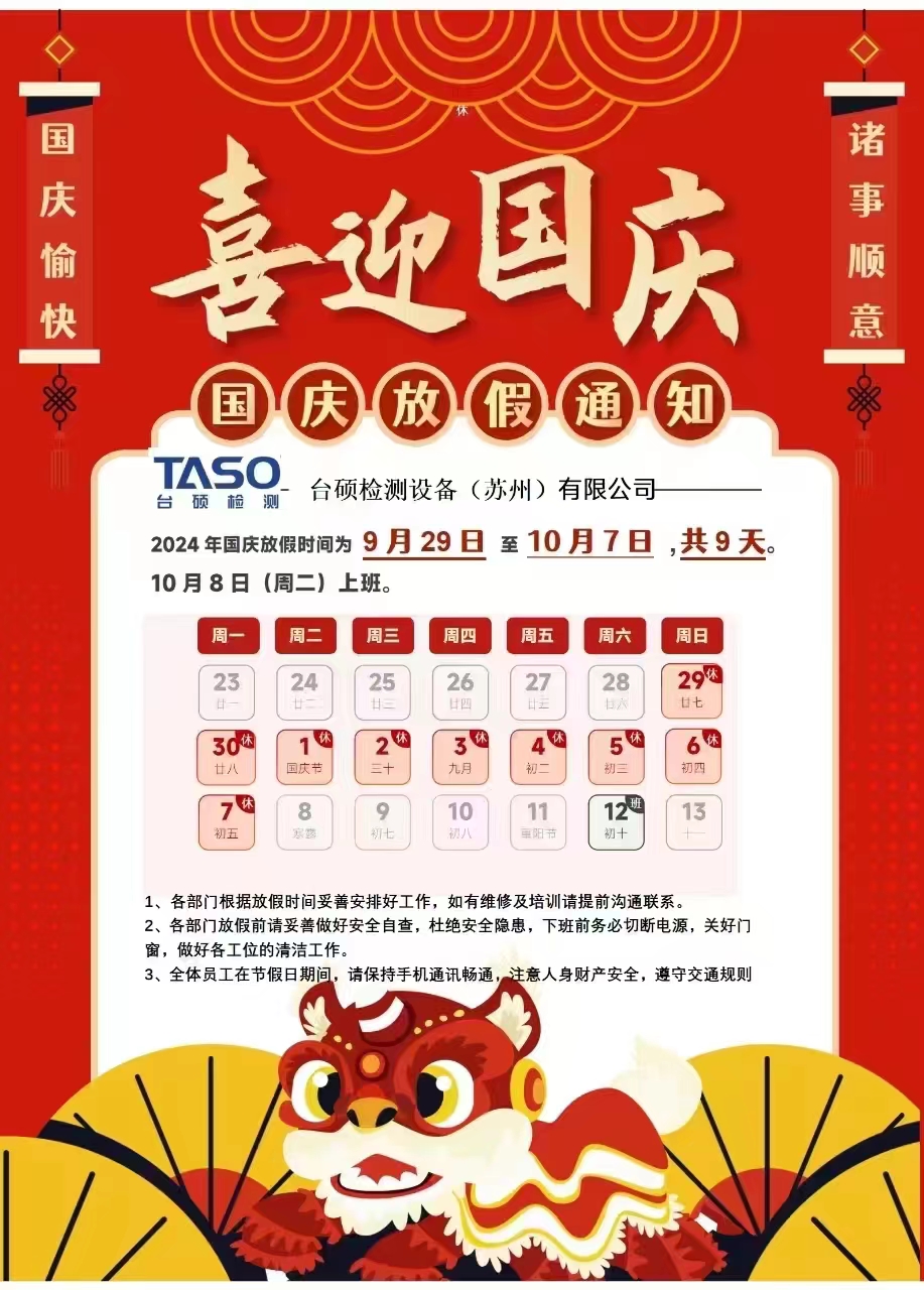 放假时间:9月29日(星期日)-10月7日(星期一),共计9天。